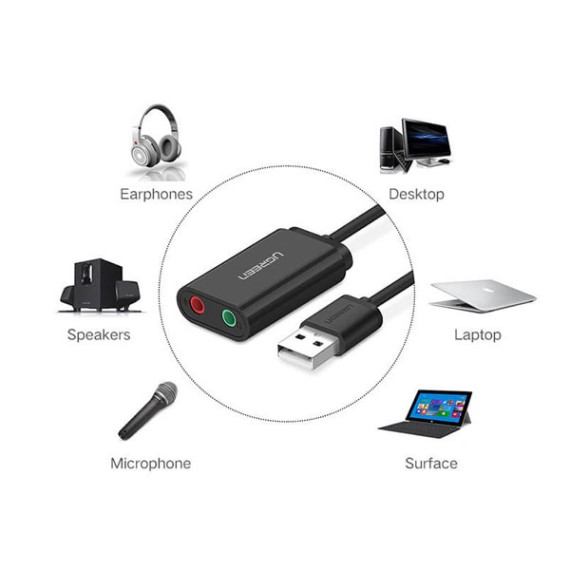 USB Sound Card - USB 2.0 ra Loa Ugreen 40964 giúp kết nối loa, tai nghe, micro tới máy tính của bạn thông qua cổng USB 2.0 với chất lượng âm thanh tuyệt vời không thua kém các card âm thanh nào khác, cần thiết trong các trường hợp thay thế cổng audio, mic bị hỏng hoặc các máy tính không hỗ trợ cổng audio
